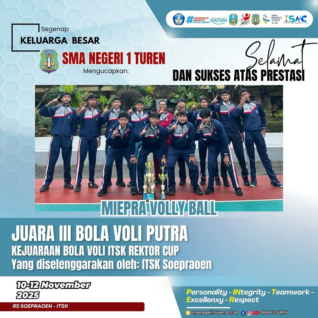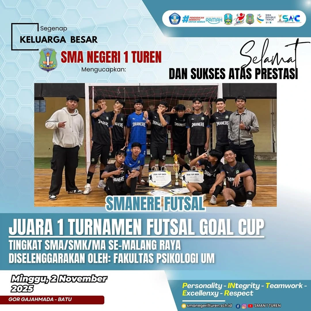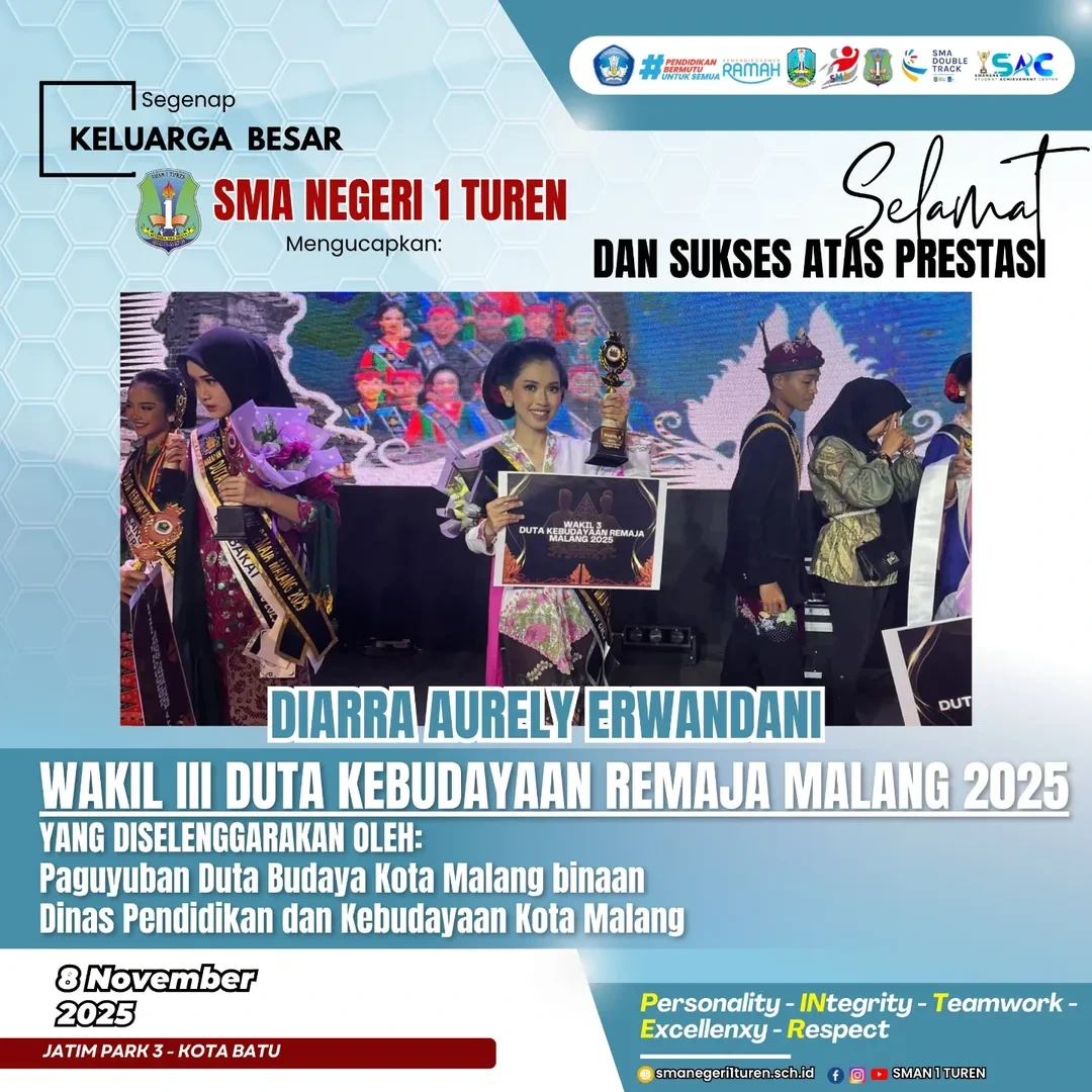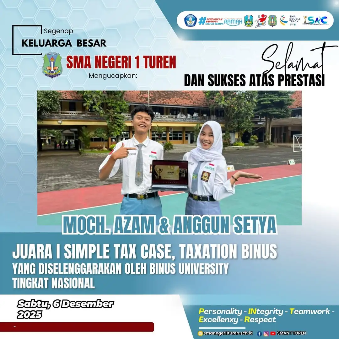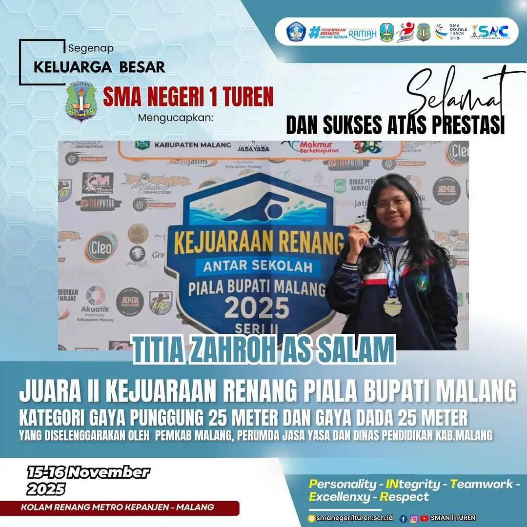 Koleksi prestasi gemilang siswa SMA Negeri 1 Turen dalam berbagai kompetisi dan olimpiade. Dokumentasi pencapaian yang membanggakan dan menginspirasi.